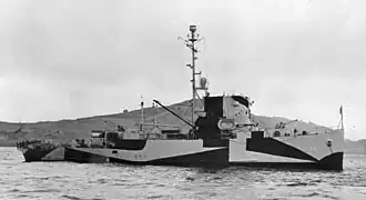 - ^ a b hazegray.org Bond states that the ship, which it identifies in Soviet service as T-593, probably was scrapped in 1956, but more recent research in Russell, Richard A., Project Hula: Secret Soviet-American Cooperation in the War Against Japan, Washington, D.C.: Naval Historical Center, 1997, ISBN 0-945274-35-1, p. 39, reports that the ship's Soviet name was T-285 and states that T-285 was scrapped in 1960. As sources, Russell cites Department of the Navy, Ships Data: U.S. Naval Vessels Volume II, 1 January 1949, (NAVSHIPS 250-012), Washington, DC: Bureau of Ships, 1949; and Berezhnoi, S. S., Flot SSSR: Korabli i suda lendliza: Spravochnik ("The Soviet Navy: Lend-Lease Ships and Vessels: A Reference"), St. Petersburg, Russia: Belen, 1994. Russell, p. 40., also states that T-593 – a Soviet name previously attributed to Bond but now identified as belonging to the former USS YMS-38 – was scrapped in 1955, and this suggests that confusion over the identity of the two ships may have led to the confusion over their scrapping dates, although it does not explain why hazegray.org asserts a 1956 probably scrapping date for the ship.