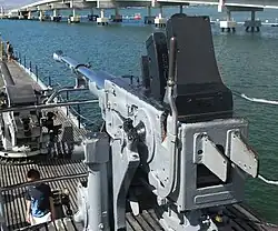 The museum's other exhibits include a Kaiten torpedo and a 40-mm quad gun, along with Poseidon C-3 and Regulus I missiles. The park is located within walking distance of the visitor center for the USS Arizona Memorial and it is across the Harbor from the Battleship Missouri Memorial.[18]