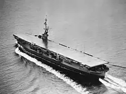 In 1941, as United States participation in World War II became increasingly likely, the US Navy embarked on a construction program for escort carriers, which were converted from transport ships of various types. Many of the escort carrier types were converted from C3-type transports, but the Sangamon-class escort carriers were instead rebuilt oil tankers. These proved to be very successful ships, and the Commencement Bay class, authorized for Fiscal Year 1944, were an improved version of the Sangamon design. The new ships were faster, had improved aviation facilities, and had better internal compartmentation.[1] They proved to be the most successful of the escort carriers, and the only class to be retained in active service after the war, since they were large enough to operate newer aircraft.[2][3]