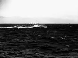 In the early morning of 7 January 1945 at 430, Chandler detected low flying planes on her radar, and soon came under heavy fire from Japanese aircraft. Sighting accurately in the moonlit night, fire from Chandler and Hovey, shot down a Japanese aircraft which had been set aflame, that crashed off Hovey's starboard beam. A second low flying aircraft had launched a torpedo, which struck Hovey on her starboard side in the after engine room around 0455, at the instant the burning plane crashed. The resultant flooding broke the ship in half and sunk her within three minutes. The explosion took 22 of her own crew and 24 survivors of Long and Brooks which Hovey had rescued on 6 January.[8] Chandler stood by, recovering 229 officers and men from the Hovey which included survivors of the two ships the Hovey had rescued. The rescue was particularly memorable as around half of the survivors recovered by the Chandler had been twice rescued from sinking or abandoned ships. Among Hovey's survivors was flag Commander Wayne Rowe Loud, in charge of the minesweeping task force, who would be awarded the Navy Cross for his rescues, and indomitable spirit inspiring the sweepers to complete their mission though under continuous enemy fire. [9] Chandler remained on duty in Lingayen Gulf until 10 January, when she cleared for convoy escort operations through mid-February.