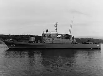 USS Chehalis (PGM-94/PG-94) was an Asheville-class gunboat of the U.S. Navy and the second ship to be named Chehalis. Chehalis was launched 8 June 1968 at the Tacoma Boatbuilding Company. She was commissioned 8 November 1969. The vessel was named in honor of Chehalis, a city in Washington state.[1] Later, she was transferred to Naval Sea Systems Command and renamed Research Vessel Athena. Athena was scrapped in 2016.