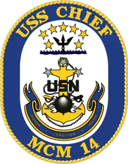 USS Chief (MCM-14) is an Avenger-class mine countermeasures ship of the United States Navy. She was named for the former USS Chief (AM-315), which in turn was named in honor of all chief petty officers of the US Navy.[1]