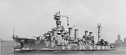 Cincinnati transferred to Pearl Harbor in April 1940, sailing for Guam and the Philippines and conducting transport duty at the end of the year. After a year in the Pacific Cincinnati returned to the Atlantic to join her sister ships in the expanding neutrality patrols in the western Atlantic. After the United States entered the war, she continued patrolling, along with convoy escort duties, blockading the French fleet at Martinique, and searching for German blockade runners.[6] On 21 November 1942, along with her sister Milwaukee and the destroyer Somers, they spotted Anneliese Essberger. The crew had begun to scuttle the ship, but the boarding party that had been dispatched was able to reach the ship and discover her true identity, a German blockade runner. They took the crew of 62 as prisoners, before she sank.[6] Cincinnati received an overhaul at New York, in early 1944, before serving as the escort flagship for three convoys crossing from New York to Belfast, Northern Ireland, from March 1944 to July 1944. She sailed for the western Mediterranean on 28 July, to assist with the assault on southern France, before again returning to New York for overhaul. She then joined the 4th Fleet at Recife, Brazil, on 17 November, and finished out the war in the European Theater patrolling the south Atlantic shipping lanes.[6]