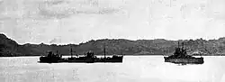 Over the following few days, Columbia provided gunfire support to the soldiers fighting inland from the beachhead and contributed her anti-aircraft battery to the defense of supply ships that were bringing reinforcements to the island. On 17 December, the ships of TG 77.12 departed for Kossol Roads; on the way, Columbia refueled some of the escorting destroyers. The ships arrived there late on 19 December, refilled their oil bunkers, and then departed the next day for Seeadler Harbor. They reached their destination on 23 December, and the ships' crews immediately began preparations for the next major phase of the Philippines campaign. Columbia sortied again on 26 December, steaming in company with Battleship Division 4, once more bound for Kossol Roads. On the way, the ships conducted various training exercises, including shooting practice.[3]