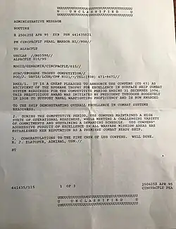 - Spokane Trophy as the top operational surface warship in the Pacific Fleet, 1994.[38]