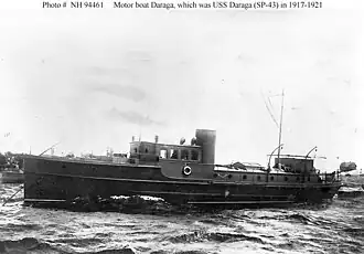 USS Daraga (SP-43) was a United States Navy patrol boat in commission from 1917 to 1919.