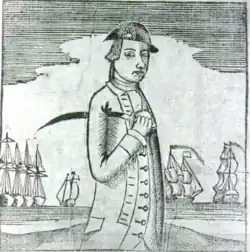 During the winter and early spring of 1781 Deane cruised with Confederacy and Saratoga in the West Indies. In May, Lloyd's List reported that the rebel frigates Dean and Protector had captured John, Ashburner, master, from Lancaster to St. Kitts, and a ship sailing from Glasgow to Jamaica with 90-0 barrels of beef and a quantity of dry goods, and had taken them into Martinique.[1] Deane again cruised with Confederacy and Saratoga in the West Indies in 1782, capturing four prizes. In April 1782 she captured the cutter HMS Jackal.[2] After two more cruises in the Caribbean, one in September 1782 and the other in 1783, she was renamed Hague in September 1782 (perhaps because of false accusation against Deane that was current at the time).