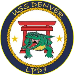 USS Denver (LPD-9), an Austin-class amphibious transport dock, was the third ship of United States Navy to bear this name. Denver's keel was laid on 7 July 1964 at Lockheed Shipbuilding and Construction Company, Seattle, Washington. She was launched on 23 January 1965, christened by Mrs. Ann Daniels Love, wife of John A. Love, the former governor of Colorado, and commissioned on 26 October 1968. After 46 years of service, Denver was decommissioned at Joint Base Pearl Harbor–Hickam on 14 August 2014. At the time of her decommissioning, Denver was the oldest deployable warship in the U.S. Navy, and was one of the last active warships to have served in Vietnam.