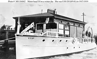This article incorporates text from the public domain Dictionary of American Naval Fighting Ships. The entry can be found here.- Department of the Navy: Naval Historical Center: Online Library of Selected Images: Civilian Ships: Elf (American Motor Boat, 1917). Served as USS Elf (SP-81) in 1917-1919