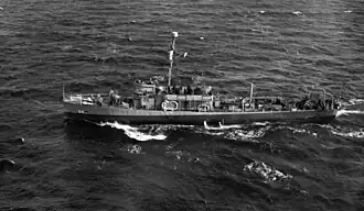 USS Firm (AM-98) was an Adroit-class minesweeper of the United States Navy. Laid down on 21 October 1941 by the Penn-Jersey Corp., Camden, New Jersey, launched on 29 May 1942, and commissioned on 10 April 1943. The vessel was reclassified as a submarine chaser PC-1602 on 1 June 1944; it was later reclassified as a control submarine chaser PCC-1602 on 1 August 1945. Very little information is available about the activities of this vessel while operating as a submarine chaser. PC-1602 was transferred to the Maritime Commission for disposal on 15 June 1948, and sold to Walter H. Wilms. Fate unknown.