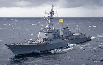 The fourth USS Gridley (DDG-101) is an Arleigh Burke-class (Flight IIA) Aegis guided missile destroyer in the United States Navy. Gridley is named after Captain Charles Gridley, commander of Admiral George Dewey's flagship USS Olympia, (Flag Captain) and recipient of Admiral Dewey's famous command, "You may fire when you are ready, Gridley" in the Battle of Manila Bay during the Spanish–American War.