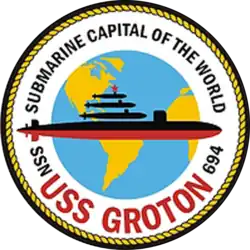 USS Groton (SSN-694), the seventh Los Angeles-class submarine, was the third ship of the United States Navy to be named for Groton, Connecticut. The contract to build her was awarded to the Electric Boat Division of General Dynamics Corporation in Groton, Connecticut on 31 January 1971 and her keel was laid down on 3 August 1973. She was launched on 9 October 1976 sponsored by Mrs. Anne Francis Richardson (née Hazard), wife of Secretary of Commerce Elliot L. Richardson, and commissioned on 8 July 1978, with Commander R. William Vogel, III in command and Master Chief Petty Officer Joseph Pow as Chief of the Boat.