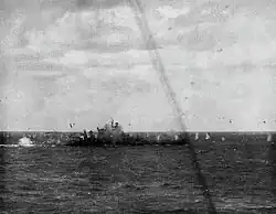 After returning to Okinawa in July, Guam was assigned to Cruiser Task Force 95, where she served as the flagship,[10] along with her sister Alaska, under the command of Rear Admiral Francis S. Low.[12] On 16 July, Guam and Alaska conducted a sweep into the East China and Yellow Seas to sink Japanese shipping. They had only limited success, however, and returned to the fleet on 23 July. They then joined a major raid, which included three battleships and three escort carriers, into the estuary of the Yangtze River off Shanghai. Again, the operation met with limited success,[13] and they returned to Okinawa by 7 August.[10]