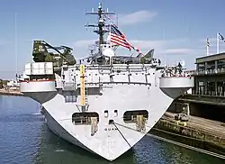| Aircraft carried | 20 × CH-46 Sea Knights, 10 × MH-53E Sea Stallion, 3 × AH-1 Cobra |