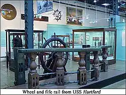 Wheel and fife rail from USS Hartford; displayed at the U.S. Navy Museum in Washington, D.C.