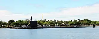![]() USS Hawaii entering Pearl Harbor during a homeport change.