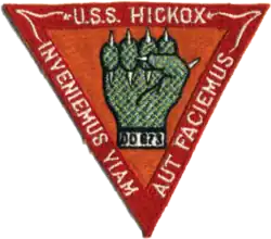 USS Hickox (DD-673) was a Fletcher-class destroyer of the United States Navy, named for Lieutenant Commander Ralph Hickox (1903–1942).