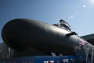 USS Hyman G. Rickover (SSN-795), is a Virginia-class nuclear-powered attack submarine of the United States Navy and the second such boat commemorating Admiral Hyman G. Rickover, pioneer of the nuclear navy.[5] The boat's sponsor is Darleen Greenert, wife of then Chief of Naval Operations, Admiral Jonathan Greenert.[6] Both the boat's name and her sponsor were announced by the Secretary of the Navy at a ceremony at the Washington Navy Yard on 9 January 2015.[6] Hyman G. Rickover's christening occurred on 31 July 2021,[7] and she was commissioned on 14 October 2023, during a ceremony at Naval Submarine Base New London, in Groton, Connecticut.[4]