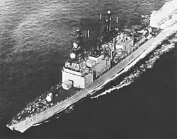 | Propulsion | 4 × General Electric LM2500 gas turbines, 2 shafts, 80,000 shp (60 MW) |