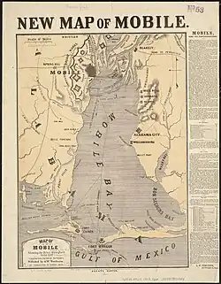 In January 1864, Acting Master Miner B. Crowell was ordered to take command of John P. Jackson temporarily.[24] On 16 February, John P. Jackson participated in operations against the Confederate defenders of Mobile Bay by towing three schooners to a point where they could bombard Fort Powell and also firing on the fort herself.[4] The Sawyer rifle suffered vent damage during the bombardment and was rendered useless. A replacement Sawyer rifle was received from the sloop-of-war USS Hartford on 27 February.[25] Until the Union naval victory at Mobile Bay on 5 August, John P. Jackson supported the campaign against Mobile, spending time at New Orleans.[4] John P. Jackson's role in the fighting on 5 August was to bombard Fort Powell, along with the double-ender gunboat USS Conemaugh, the steamer USS Narcissus, the tinclad USS Stockdale, and the steamer USS Estrella.[26] Back on blockade duty in the Mississippi Sound, John P. Jackson captured the schooner Medora on 8 December. She continued on blockade duty with the West Gulf Blockading Squadron for the rest of the war.[4] Lieutenant A. R. Yates was listed as her commander on 1 February 1865.[27] By 1 July, she had been earmarked for sale and was at Pensacola, Florida.[28] She was decommissioned at New Orleans on 5 September 1865.[4] During her time in military service, John P. Jackson required $32,012.66 in repairs. She was sold at auction to Marcy, Maury & Co. for $13,500 on 27 September.[6] After the war, she was used as a merchant vessel under the name J. P. Jackson and ceased to appear in shipping records in 1871.[29]