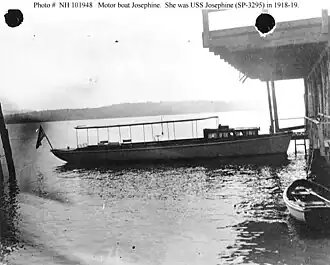 This article incorporates text from the public domain Dictionary of American Naval Fighting Ships. The entry can be found here.- Department of the Navy: Navy History and Heritage Command: Online Library of Selected Images: Civilian Ships: Josephine (Motor Boat, 1913); Later USS Josephine (SP-3295), 1918-1919