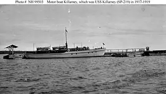 This article incorporates text from the public domain Dictionary of American Naval Fighting Ships. The entry can be found here.- Department of the Navy: Navy History and Heritage Command: Online Library of Selected Images: Civilian Ships: Killarney (Motor Boat, 1910). Served as USS Killarney (SP-219) in 1917-1919