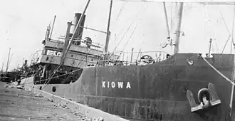 ![]() SS Kiowa in port, probably around the time of her inspection for U.S. Navy service by the 3rd Naval District.