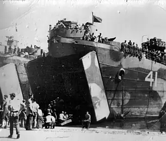 ![]() USS LST-41 beached, date and location unknown