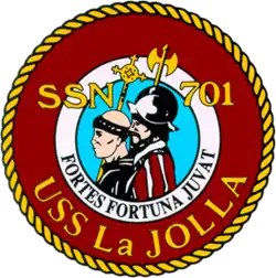 USS La Jolla (SSN-701/MTS-701), a Los Angeles-class submarine, is named for the La Jolla community in San Diego, California. The contract to build her was awarded to the Electric Boat Division of General Dynamics Corporation in Groton, Connecticut on 10 December 1973 and her keel was laid down on 16 October 1976. She was launched on 11 August 1979 sponsored by Mrs. Jean Bryant Wilson, wife of Congressman Bob Wilson, and commissioned on 24 October 1981.[1] In 2017, La Jolla was converted to a Moored Training Ship and is currently stationed at NPTU Charleston in Goose Creek, SC.