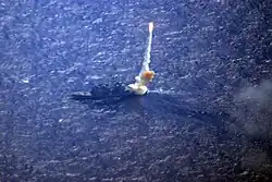 On 14 February 2008 the U.S. Department of Defense announced that as part of Operation Burnt Frost Lake Erie and two other ships would attempt to hit the failed satellite USA-193 in the north Pacific just prior to burn up during a period after 20 February using a modified SM-3 missile.[8][9] On 21 February 2008, at approximately 3:30 UTC, the missile was fired and later confirmed to have struck the satellite. The military intended that the kinetic energy of the missile would rupture the hydrazine fuel tank allowing the toxic fuel to be consumed during re-entry.[10][11]