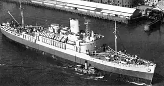 In 1942 the US Government bought Windhuk from Brazil and sent 200 US Navy personnel to Brazil to fit her with new diesel engines. The work was not completed until March 1943, when she made a thirty-day voyage to Norfolk, Virginia for further work and conversion to a troopship.