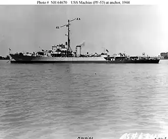 This article incorporates text from the public domain Dictionary of American Naval Fighting Ships. The entry can be found here.- Department of the Navy Naval Historical Center Online Library of Selected Images: U.S. Navy Ships: USS Machias (PF-53), 1944–1953