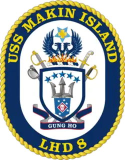 USS Makin Island (LHD-8), a Wasp-class amphibious assault ship, is the second ship of the United States Navy to be named for Makin Island, target of the Marine Raiders' Makin Island raid early on in the United States' involvement in World War II.