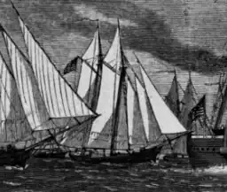 ![]() Maria J. Carlton (center) and other ships of the Mortar Flotilla