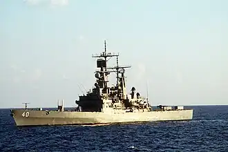USS Mississippi (CGN-40), a Virginia-class nuclear-powered guided-missile cruiser, was the fourth ship of the United States Navy named in honor of the 20th state admitted to the Union. Her keel was laid down by the Newport News Shipbuilding and Drydock Company at Newport News, Virginia, on 22 February 1975. She was launched on 31 July 1976. The ship was commissioned on 5 August 1978 by Jimmy Carter, then serving as the 39th president of the United States. Early deployment included escorting the carrier USS Nimitz. She also was deployed in 1989 as a response to the capture and subsequent murder of U.S. Marine Corps Colonel William R. Higgins by terrorists.[1]