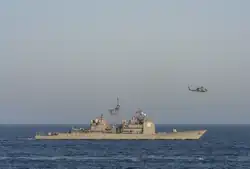 USS Monterey (CG-61) is a Ticonderoga-class guided-missile cruiser that served in the United States Navy. She is the fourth US Navy vessel named for the Battle of Monterrey at Monterrey, Nuevo León during the Mexican–American War in 1846.[1] She was built at Bath Iron Works in Maine. The ship was decommissioned on 16 September 2022.[2]