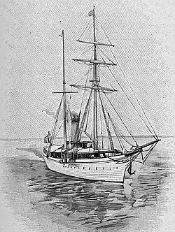 In September 1892, John Lysaght returned to Ramage & Ferguson and ordered an even larger yacht, named Cleopatra, and sold Semiramis.[1][5][6] The French buyer was widow Mme. Amicie Lebaudy, whose youngest son, Max Lebaudy (1873-1895), had become a millionaire aged 19. In an attempt to lure him away from Paris and extravagant expenditure founded on debt, she planned a long cruise, in the company of a young scientist, Louis Lapicque; the son refused to go, and Semiramis eventually sailed for the Indian Ocean without him in November 1892.[7] Lapicque's ethnological studies of the Andaman negritos were successfully completed.[7][8]