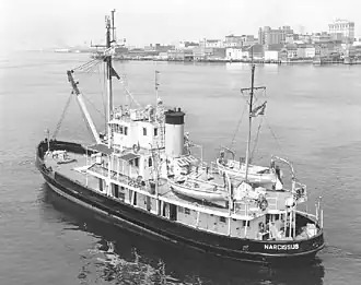 USS Narcissus (WAGL-238) was built for the United States Coast Guard by Marine Iron and Shipbuilding Corporation, Duluth, Minnesota, in 1939. Designed as a navigational aid tender, she was assigned to Wilmington, North Carolina. In 1940 she transferred to Portsmouth, Virginia.