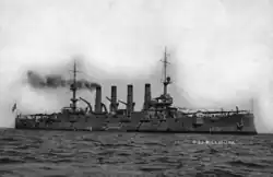 USS North Carolina (ACR-12/CA-12) was a Tennessee-class armored cruiser of the United States Navy. The ship was built by Newport News Shipbuilding; she was laid down in March 1905, launched in October 1906, and was commissioned in May 1908. The final class of armored cruisers to be built for the US Navy, North Carolina and her sisters were armed with a main battery of four 10-inch (254 mm) guns, and were capable of a top speed of 22 knots (41 km/h; 25 mph).