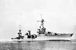 USS Northampton (CL/CA-26) was the lead Northampton-class cruiser in service with the United States Navy. She was commissioned in 1930, originally classified a light cruiser because of her thin armor but later reclassified a heavy cruiser because of her 8-inch guns. During World War II she served in the Pacific and was sunk by Japanese torpedoes during the Battle of Tassafaronga on 30 November 1942. She was named after the city of Northampton, Massachusetts, the home of former President Calvin Coolidge.[2]