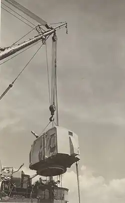The ship was propelled by two Westinghouse geared steam turbines powered by two "D" Express boilers, which created 12,000 shaft horsepower (8,900 kW) for a designed maximum speed of 24 knots (44 km/h; 28 mph). She had a range of 6,000 nautical miles (11,000 km; 6,900 mi) at 12 knots (22 km/h; 14 mph).[3]