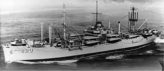 ![]() USS Okanogan (APA-220), in the Western Pacific, c. 1958.