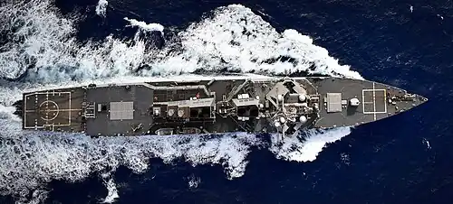 | Propulsion | 4 × General Electric LM2500-30 gas turbines, 2 shafts, 100,000 shp (75 MW) |