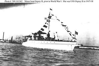 This article incorporates text from the public domain Dictionary of American Naval Fighting Ships. The entry can be found here.- Department of the Navy Naval History and Heritage Command Online Library of Selected Images: U.S. Navy Ships: USS Osprey II (SP-928), 1917-1918. Originally the civilian pleasure boat Osprey II