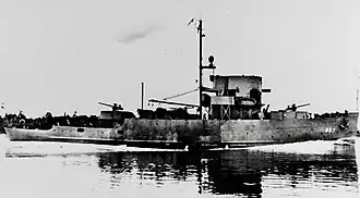 After the war on 12 September 1945, she was transferred to the Republic of China Navy as ROCS Yong Tai (PCE-41) under the Lend-Lease program. Yong Tai was commissioned on an unknown date under the command of Lieutenant Colonel Wang Enhua.[2] On 8 June 1947, Yong Tai was transiting from Huludao to Qingdao when a newly assigned second lieutenant Ji Rui armed with a gun fired 7 shots on board the ship, injuring the captain, Lieutenant Colonel Li Yuxi and two other officers. Naval officer Zheng Jiamo was killed during the incident. On the 17th, the ship then arrived in Qingdao and the Qingdao naval authorities were notified of the incident.[2]