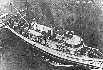 USS Pelican (AM-27/AVP-6) was an Lapwing-class minesweeper acquired by the United States Navy for the dangerous task of removing mines from minefields laid in the water to prevent ships from passing.