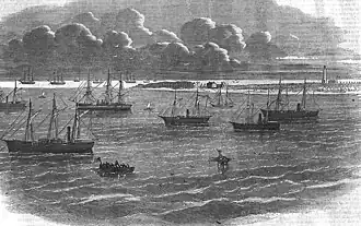 ![]() USS Sagamore (3rd ship from the right) at Ship Island base,