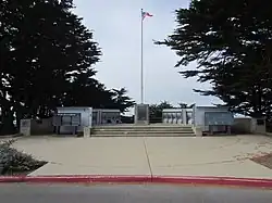 The USS San Francisco Memorial is a war memorial installed in San Francisco's Lands End, in the U.S. state of California.[1][2] The memorial has a plaque commemorating the approximately 100 sailors and seven Marines who died aboard the cruiser USS San Francisco.[3][4] The memorial is "oriented towards Guadalcanal" and consists of "a shell pocked section of USS San Francisco‘s bridge wings", which were removed, unrepaired, after the battle. "The site (sic) of heavy gauge steel perforated like paper captures the fury and horror of that night better than any sculpture ever could."