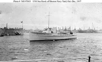 ![]() USS Sea Hawk off the Boston Navy Yard, sometime between October and December 1917.