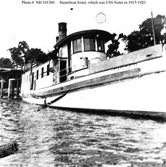 - ^ Department of the Navy Naval History and Heritage Command Online Library of Selected Images: Civilian Ships: Sister (Harbor Steamer, 1882). Served as USS Sister (SP-822) in 1917-1920.